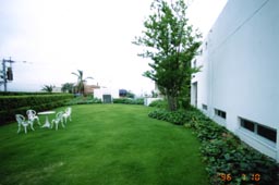 芝生は、専門会社の芝生施工により美しい芝生の景色が広がる。