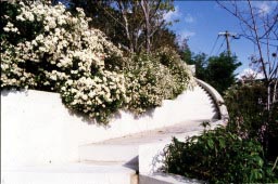 懸崖状態になったノジギクが道行く人々を楽しませている |