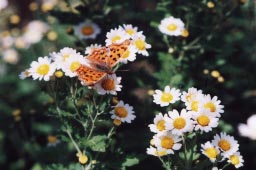 植栽直後、ノジギクの花に蜂や蝶がたくさん集まってきた |