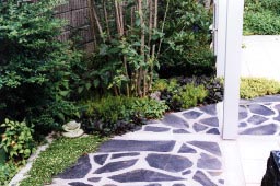 平面的な庭を視覚的に広がりを大きく見せる手法
