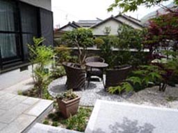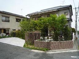 団地十字路の角地に建つ二階家。和風庭園の依頼