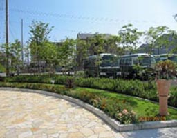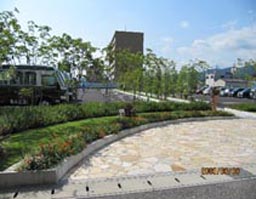駐車場から本館へのアプローチ前の円形スペース |