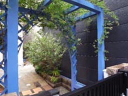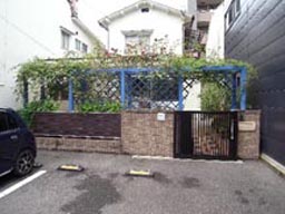 両側の建物から谷間の様な場所が庭のスペースになっている